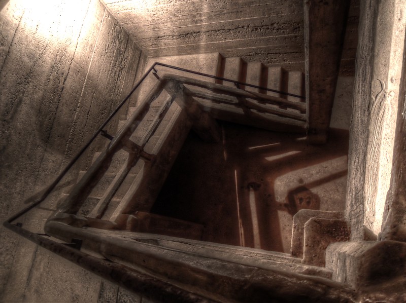 Abb. oben: Treppenabstieg unter den Graben